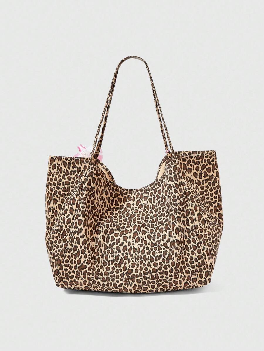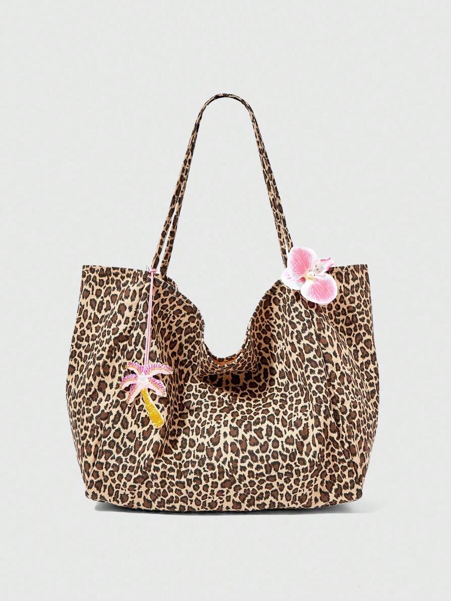 Con su estampado de leopardo y detalles encantadores, como el llavero de palmera y la flor tropical — esta tote combina el lado salvaje con el espíritu veraniego de Kiwi Dream.
