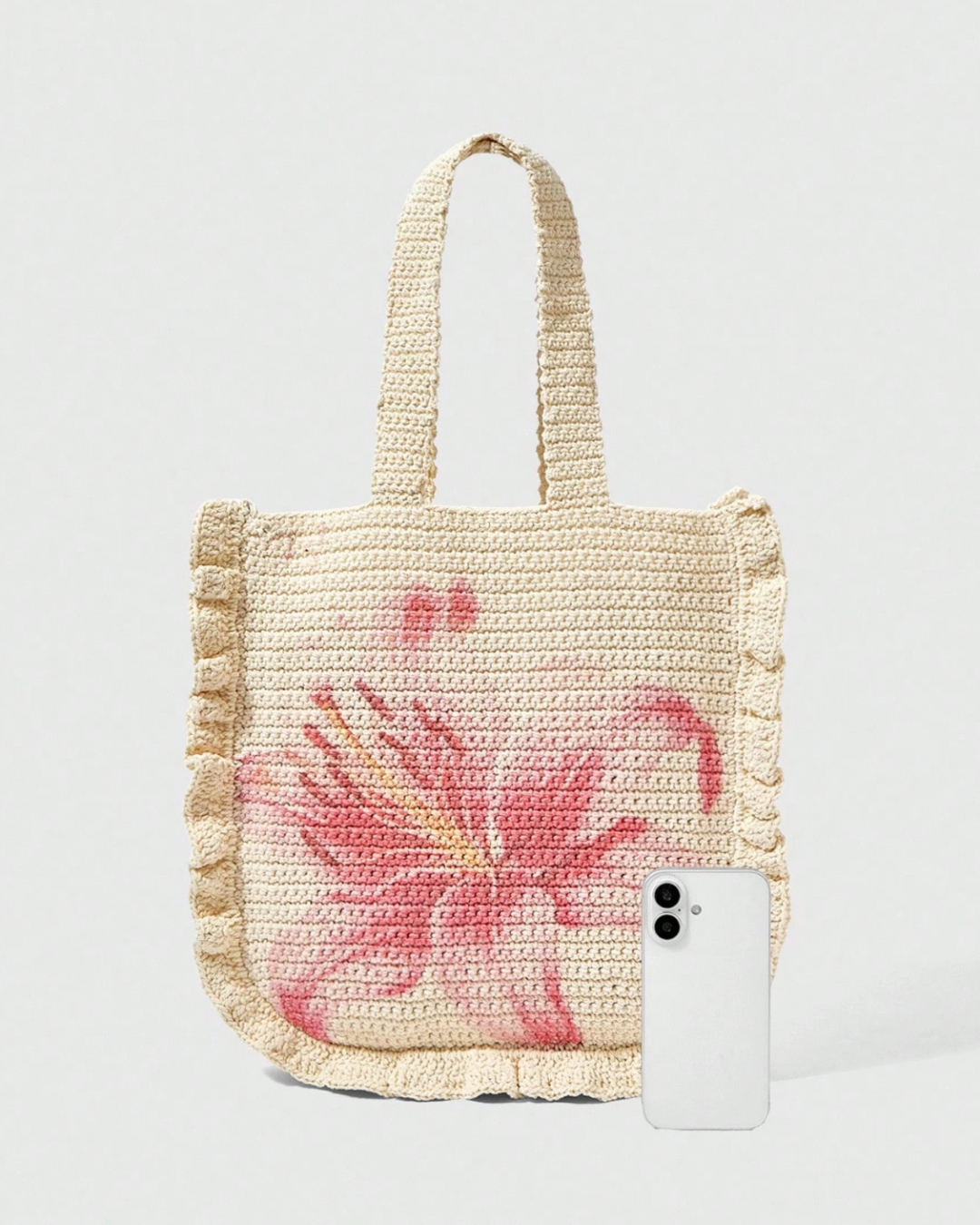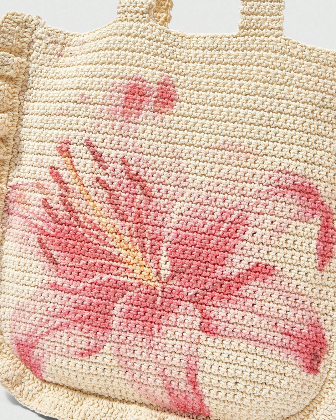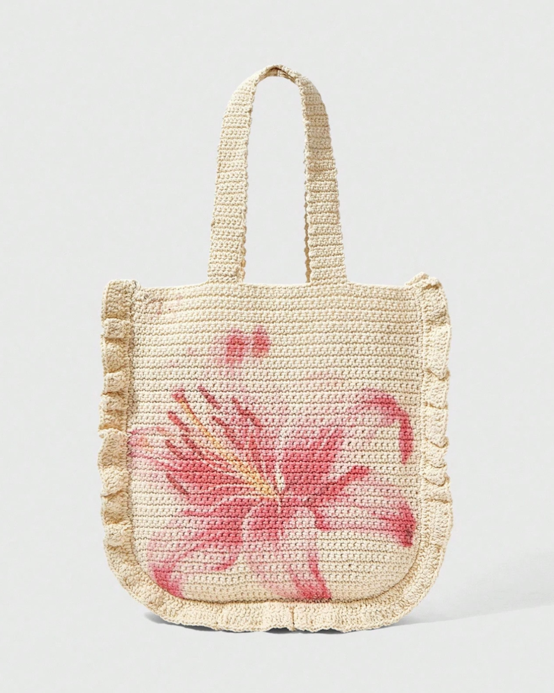 Tejida y con un diseño floral en tonos rosados, Dalia tote es ese aire natural y veraniego que transforma cualquier look en algo especial.